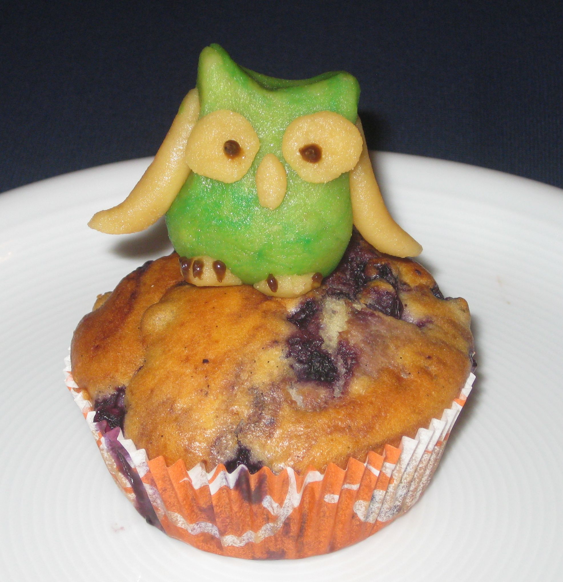 - Blaubeermuffins mit Marzipaneule