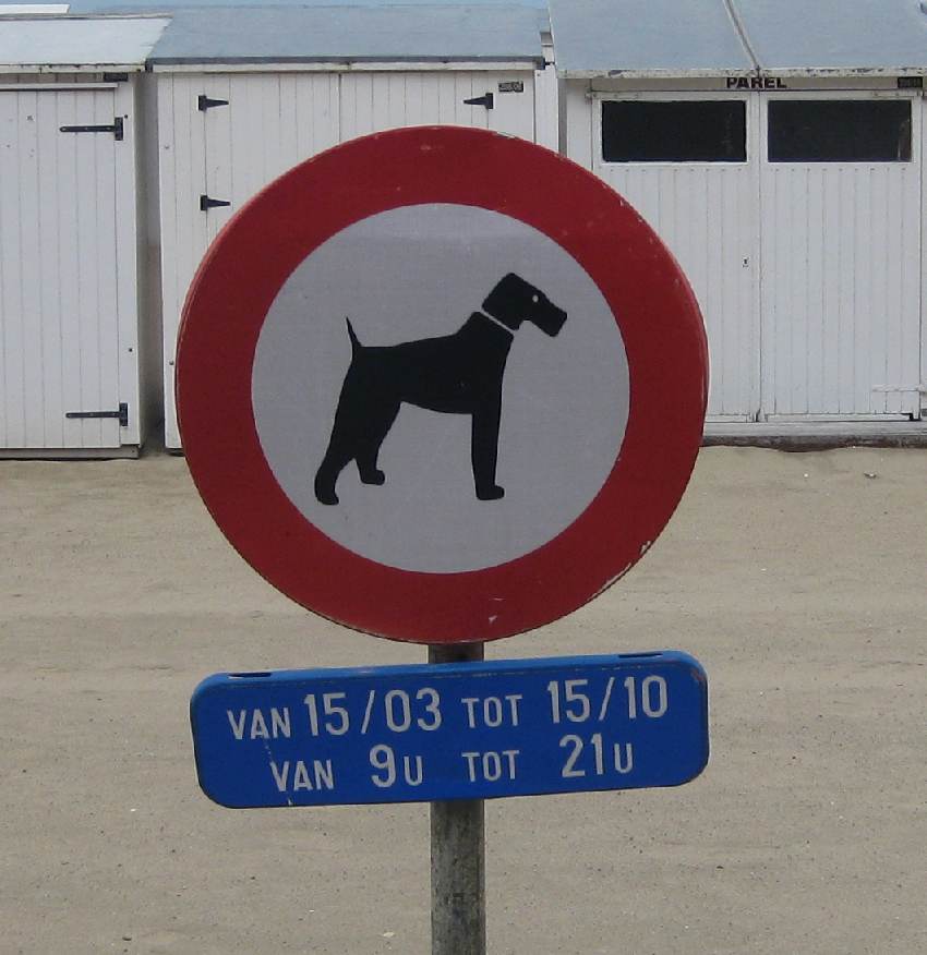Besonders aufgefallen sind uns dieses Mal die kreativen Verbotsschilder für Hunde, die nicht an den Strand dürfen. Neben dem Standard-Hund, der sich aus mehreren Rechtecken zusammensetzt, gibt es an der Strandpromenade noch Schildervariationen, auf denen man bestimmte Hunderassen erkennen kann.